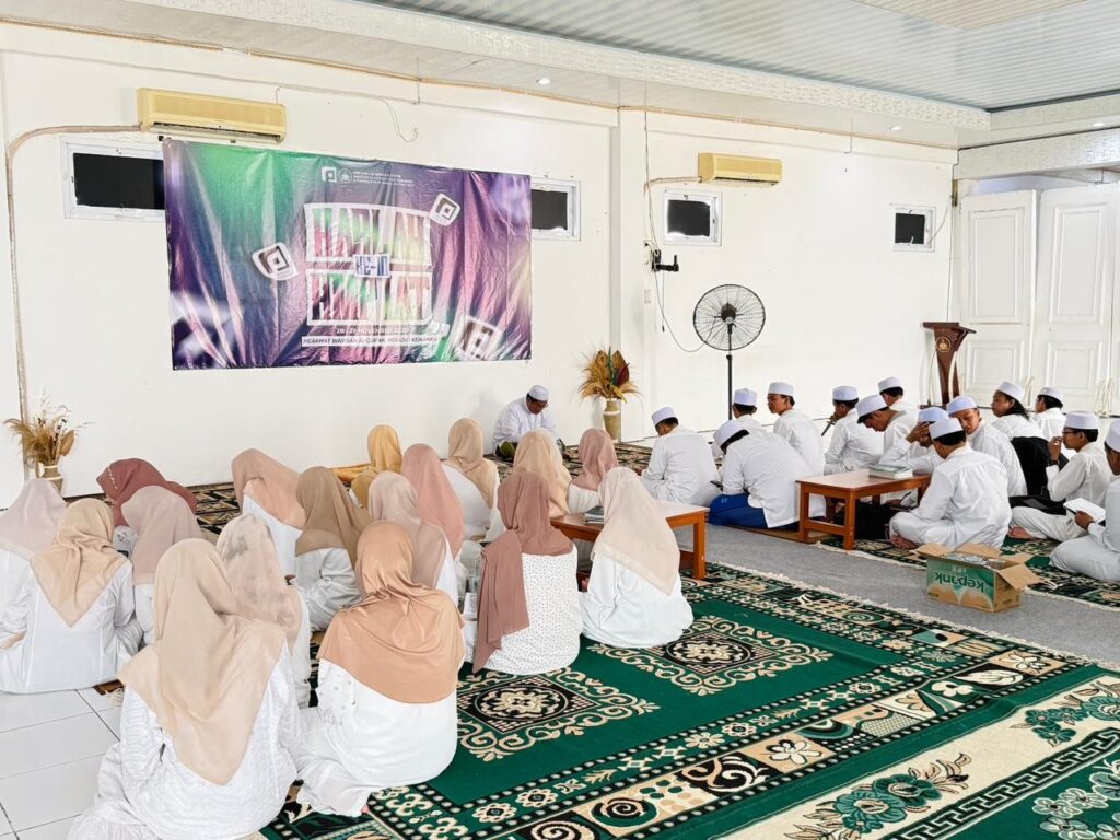 Pada pukul 09.50 WIB, rangkaian kegiatan dilanjutkan dengan pelaksanaan Khotmil Qur’an yang dibacakan secara bersama – sama. Kehadiran Ust. Hermansah, M.Ag. selaku tamu undangan turut menambah kekhidmatan suasana. Lantunan Ayat suci Al – Qur’an menggema di seluruh Auditorium, menghadirkan suasana sakral dan reflektif. Harmoni bacaan para peserta menciptakan momentum spiritual yang mendalam, menjadikan sesi ini sebagai salah satu titik penting dalam rangkaian peringatan.