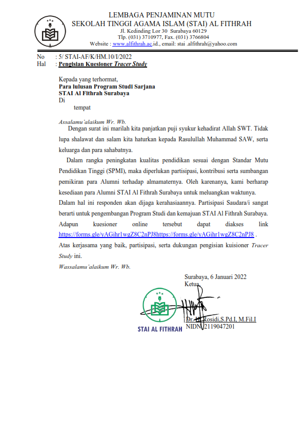 berarti untuk pengembangan Program Studi dan kemajuan STAI Al Fithrah Surabaya.