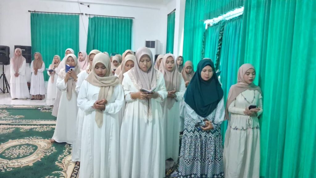 Kegiatan ini dilaksanakan dengan penuh khidmat dan kekhusyukan. Sejak awal acara, suasana telah terasa syahdu dengan lantunan sholawat yang menggema, menghadirkan ketenangan sekaligus kehangatan spiritual di tengah para peserta yang hadir dengan dresscode yang telah ditentukan.